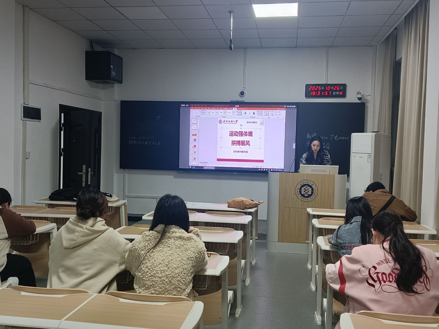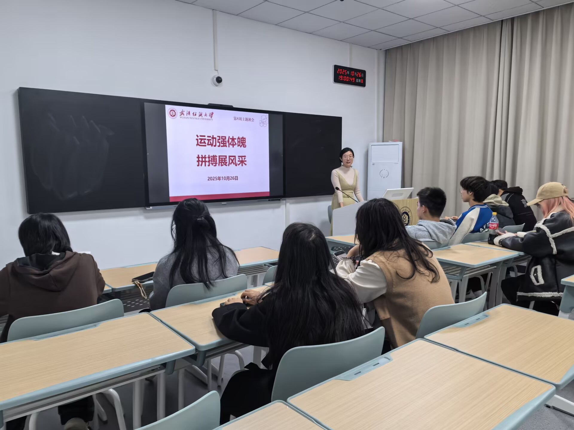 文明其精神,野蛮其体魄。班会上师生共同学习习近平总书记关于体育的重要论述,深刻领会“体育强则中国强,国运兴则体育兴”的战略内涵,明确体育在民族复兴中的重要作用。班会还回顾了学校运动会、太极拳比赛等体育活动成果,这些活动不仅强健学子体魄,更诠释了“自强不息,经天纬地”的纺大精神。最后,各班主任普及了科学锻炼知识与安全注意事项,为学子健康运动护航。