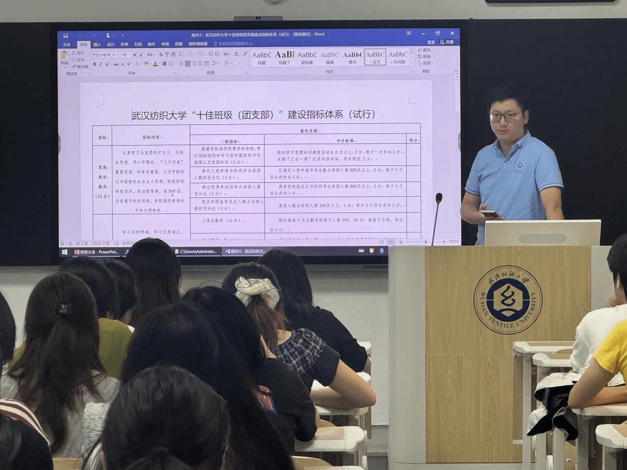 培训中,团委学生会指导老师李宏运围绕“必赢线路检测中心‘十佳班级(团支部)’建设指标体系(试行)”展开深入解读,从思想政治教育、学风建设等维度,对指标内容、二级指标及量化考核评分标准进行详细剖析。他强调,班团骨干要以指标体系为引领,在思想引领上凝聚合力,在学风建设上树起标杆,在组织建设上夯实基础。