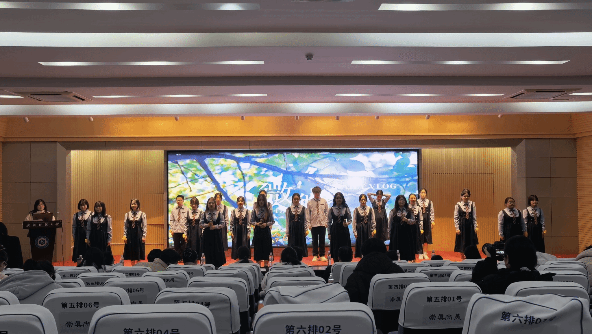 答辩结束后,广电12301班带来风采展示节目合唱《微微》,以细腻的演唱传递出班级成员团结向上、温暖向阳的精神风貌,获得现场评委与观众的认可。