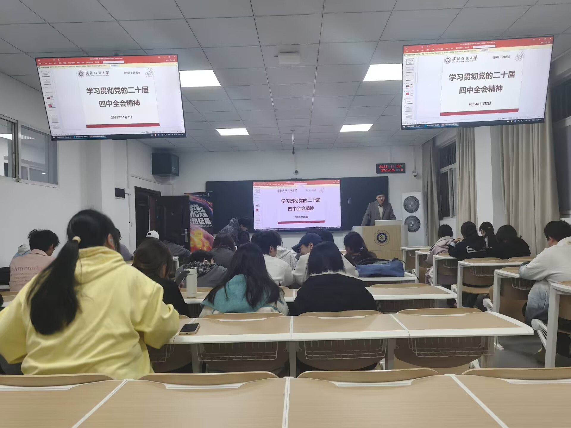 为深入学习贯彻党的二十届四中全会精神,引导广大学生以担当实干、奋楫争先的姿态投身新时代新征程,必赢bwin线路检测中心各班级于11月2日晚上召开“学习贯彻党的二十届四中全会精神”主题班会。会议由各班班主任主持,全体学生参加。