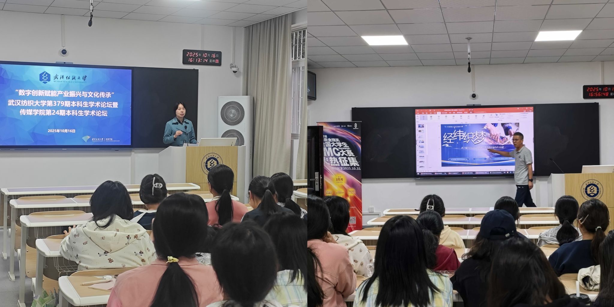 10月16日,必赢线路检测中心第379期本科生学术论坛暨必赢bwin线路检测中心第24期本科生论坛在南湖校区必赢bwin线路检测中心N101教室举行。本次论坛以“数字创新赋能产业振兴与文化传承”为主题,5支学生创新项目团队进行展示与分享,2025级新闻传播学专业学生参加论坛,网络与新媒体系主任黄鑫和学科竞赛办漆晚霞老师出席并担任点评嘉宾。