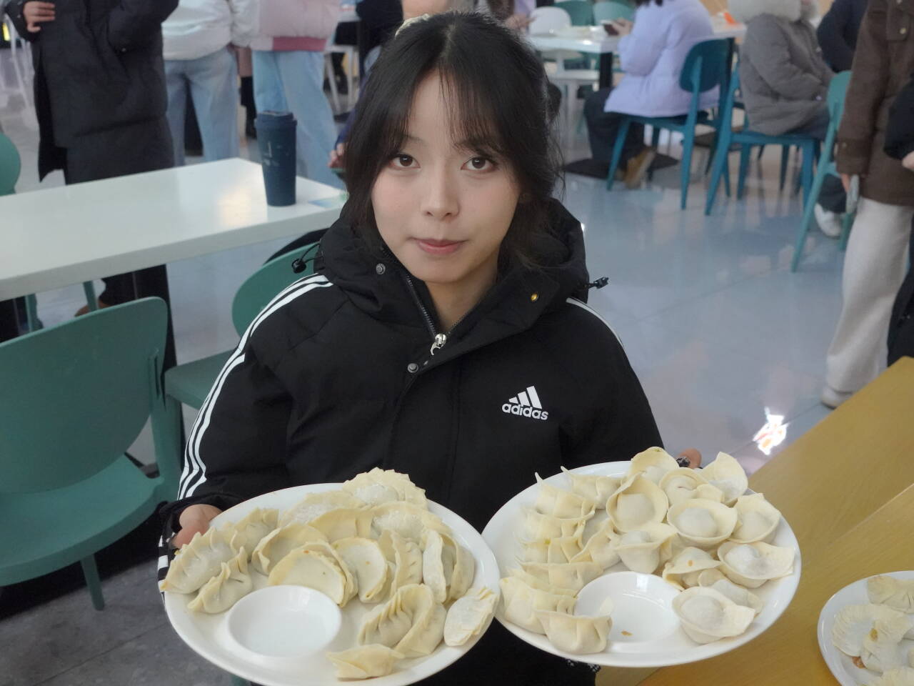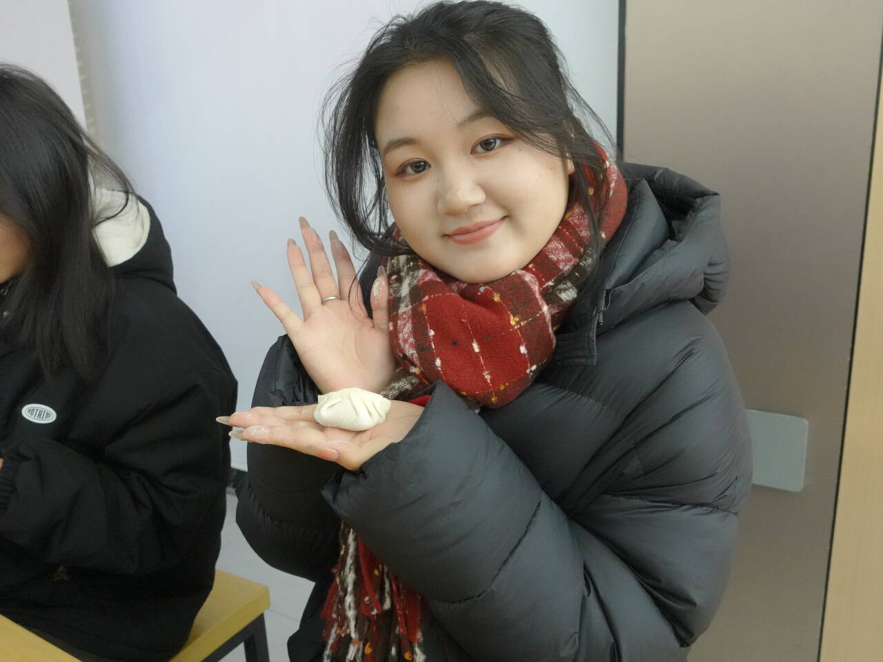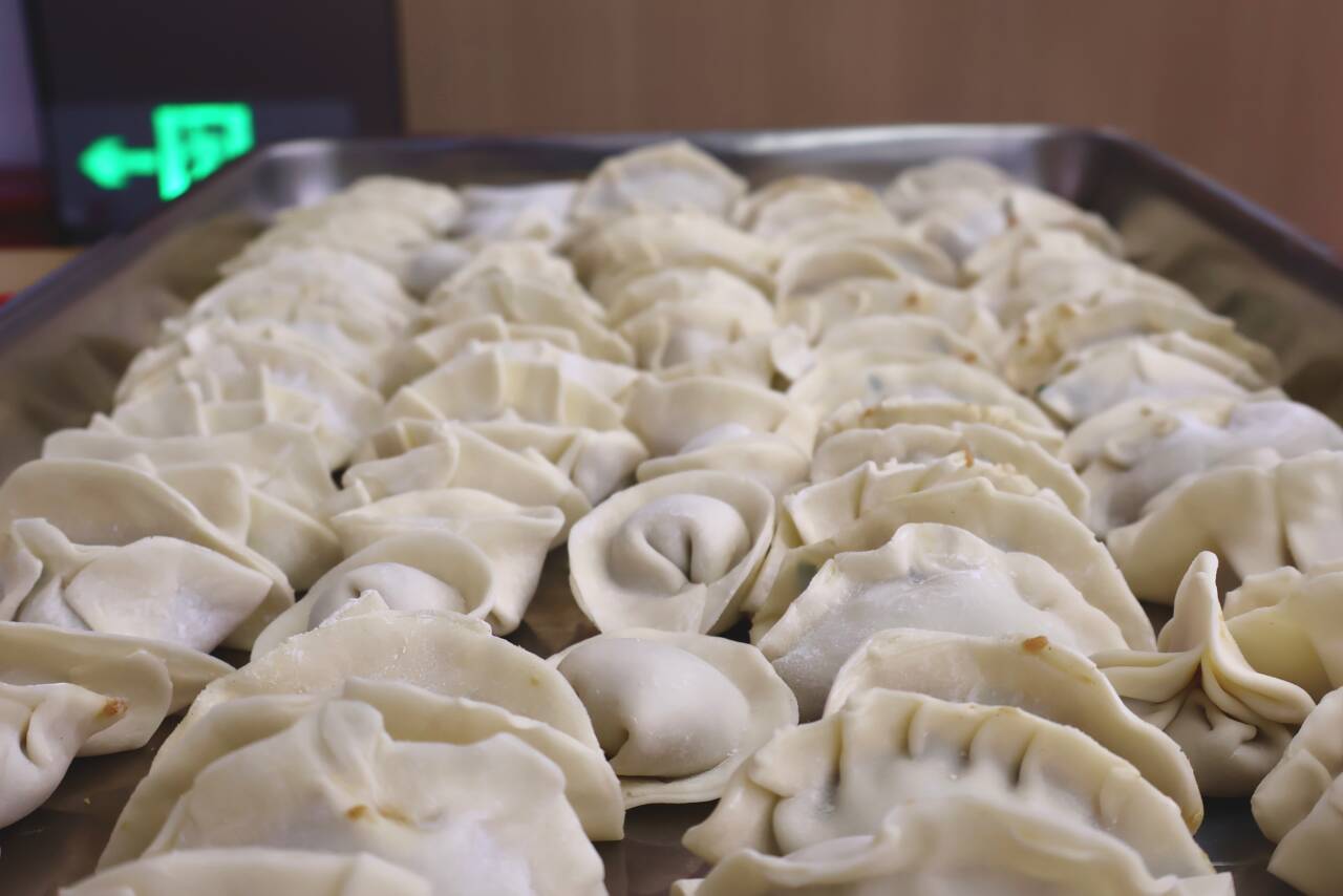 经过半小时协作,饱含温情的饺子分批送入后厨。片刻后,蒸汽氤氲、香气四溢。除白菜鲜肉、韭菜鲜肉等传统馅料外,学院还精心准备了包有红枣的“幸运饺子”,为活动增添惊喜与期待。