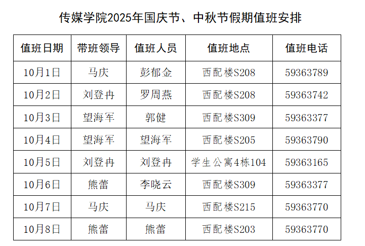 必赢bwin线路检测中心2025年国庆节、中秋节假期值班安排