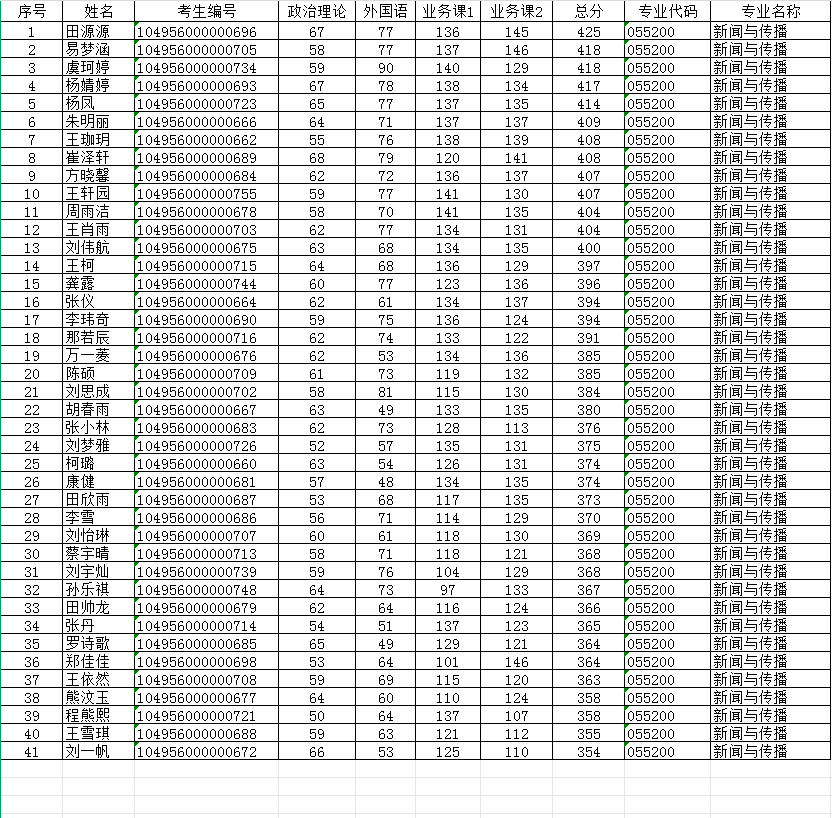 新闻与传播(专硕) | 43 | 65 | 319 |