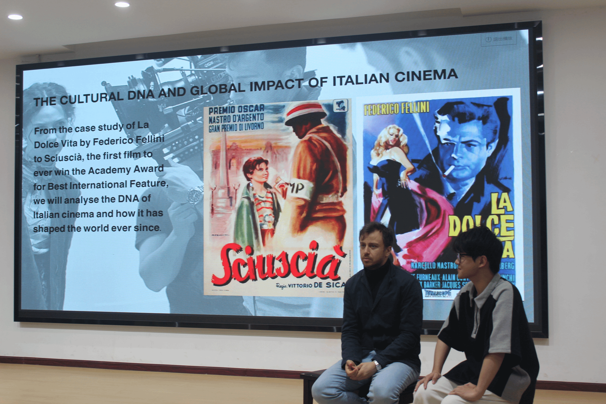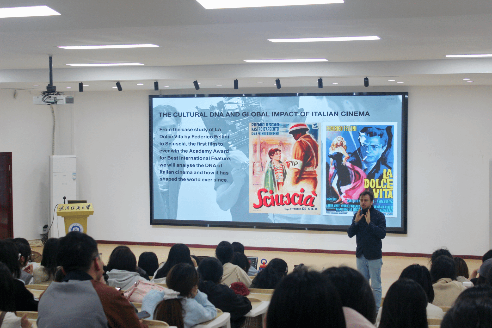 During the activity,Professor CassiniThrough the appreciation of Italian classic films, it shows the artistic creation style of Italian films to teachers and students, tells the history of the development and transformation of Italian films in combination with the historical background, and focuses on the emotional expression and characterization of films.He pointed out that compared to American superhero movies that emphasize visual impact and grand narrative, Italian movies place more emphasis on using delicacyThe emotional connection and inner resonance of。