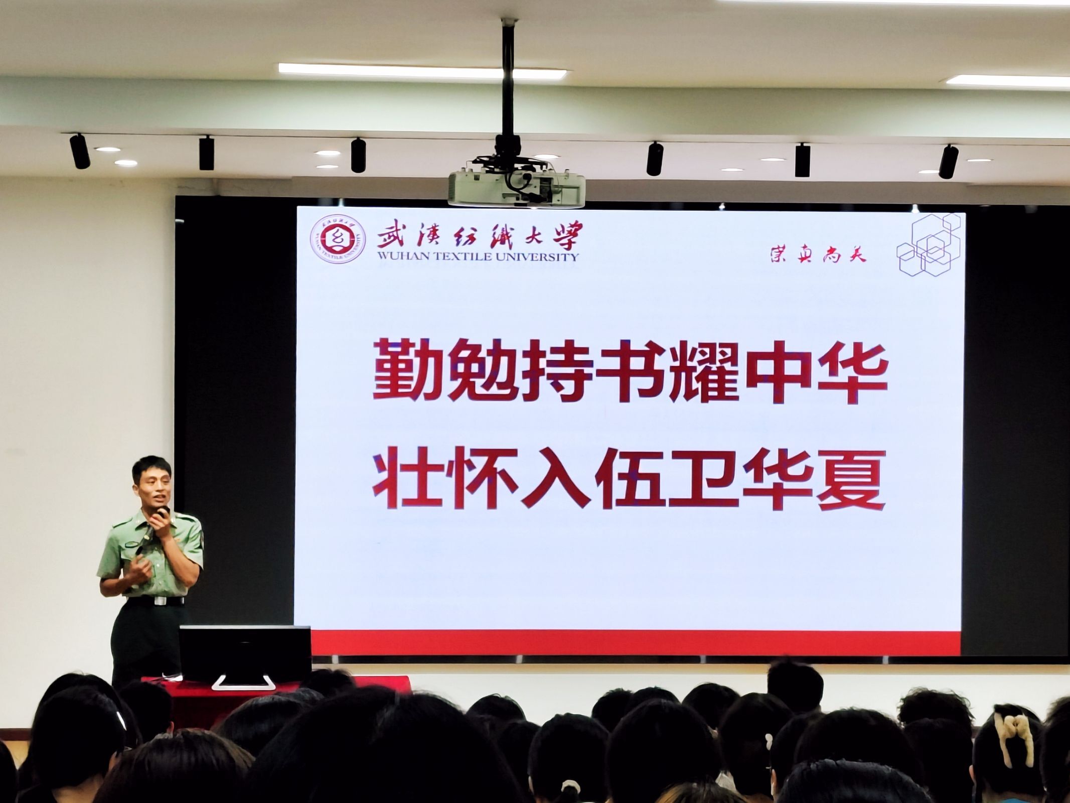 9月12日,退役研究生吕自龙分享自己的军旅经历,揭开了军营生活的神秘面纱,让新生们看到了军人光环之下的付出与担当。他还详细介绍了国家最新的大学生征兵优惠政策,包括学籍保留、学业保障、经济优待、升学加分、就业扶持等方面,并对2025年征兵的报名条件、时间节点、流程步骤等进行逐一说明,为新生全方位科普征兵详情。